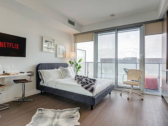 This property is a corporate rental. Please note that the monthly rental price for this property is dynamic and subject to seasonal adjustments. For an accurate quote, provide us with your intended move-in and move-out dates. Welcome to our Skyline studio in Toronto\'s vibrant heart! Enjoy unobstructed city view right from your window. The space boasts a cozy full-sized bed, a fully-equipped kitchen (stove, oven, fridge, microwave), and a smart TV packed with Netflix, Disney+, and Apple TV. Explore with ease we\'re strategically located near key attractions: CN Tower, Rogers Centre, Scotiabank Arena, AGO, Fashion District, and the lively Queen St. Dive into Toronto\'s best, then relax high above it all. Welcome to our luminous studio that marries modern comforts with sweeping city views. Designed with a touch of elegance, the space boasts clean lines, a calming neutral palette, and contemporary fixtures. Unwind on the full-sized bed, surrounded by fresh linens and plush pillows. For those culinary moments, our kitchen is ready, equipped with a stove, oven, refrigerator, and microwave. Adjacent is a sunlit dining space, ideal for meals or doubling as a workspace. Entertainment is at your fingertips with our smart TV, offering a curated selection from Netflix, Disney+, and Apple TV. The expansive windows not only invite a cascade of natural light but also frame a breathtaking view of Toronto\'s dynamic skyline. What truly sets our studio apart is its unbeatable location. Positioned in the heart of Toronto, you\'re just moments away from iconic attractions, cultural hubs, and the buzz of vibrant neighborhoods. Dive deep into the city\'s essence, with everything conveniently within reach. Guests have full and exclusive access to the studio, ensuring a private and uninterrupted stay. This includes the main living area, the fully-equipped kitchen, and the dedicated dining space. You can freely use the smart TV with its array of streaming options to relax after a day out. Additionally, while we don\'t offer parking on the premises, there are several nearby options for those traveling with vehicles. Please let us know if you require any recommendations. Common areas in the building, such as the lobby and elevators, are shared with other residents, so we kindly ask that you respect these spaces and maintain a courteous noise level. We\'ve aimed to create an environment where you can experience the best of Toronto with all the comforts of home. Enjoy your stay! While I won\'t be available in person during your stay, I am always just a quick message or phone call away. We have a local property manager who can assist with any urgent needs or concerns that may arise during your stay. We strive to make your visit as smooth and enjoyable as possible, so do not hesitate to reach out if you have any questions or need recommendations for things to do in the area. My goal is to make your stay a memorable and comfortable one. Welcome to the pulsating heart of Toronto! Our neighbourhood is a harmonious blend of the city\'s rich history and its dynamic future. Just a few steps away, iconic landmarks like the CN Tower and Rogers Centre paint the skyline, while cultural hubs like the Scotiabank Arena and the Art Gallery of Ontario (AGO) promise immersive experiences. For the fashion-forward, the nearby Fashion District offers a taste of Toronto\'s trendiest styles, and the bustling Queen St is a mosaic of eclectic boutiques, renowned eateries, and vibrant nightlife. With an array of cafes, bars, and international cuisines, foodies will be spoilt for choice. And the best part? Most attractions and amenities are within walkable distances, making exploration a breeze. Whether you\'re in the mood for arts, entertainment, shopping, or just a delightful meal, our neighbourhood offers a slice of Toronto\'s very best. Dive in, and let the city\'s rhythm captivate you! Navigating our neighbourhood is effortless, thanks to its strategic location and a myriad of transportation options. On Foot: The beauty of our location is its walkability. Major attractions, restaurants, and shops are merely a stroll away. Whether it\'s the CN Tower or the vibrancy of Queen St, exploring on foot is both convenient and delightful. Public Transport: We\'re privileged to be near two main subway stations: Osgoode and St Andrew. These stations are part of the TTC (Toronto Transit Commission) network, connecting you seamlessly to various parts of the city. If you plan on frequent subway or bus rides, consider getting a TTC day pass for unlimited travel. Biking: For those looking to pedal around, Toronto\'s bike-share program is an excellent option. Docking stations abound, allowing you to rent a bike for short trips and drop it off at any other station. Driving & Parking: If you\'re coming by car, be mindful that downtown parking can be challenging at times. While we don\'t have on-site parking, there are several parking garages and street spots in the vicinity. Apps like Green P or SpotHero can be handy to locate and reserve parking spaces. Taxis & Ride-Sharing: Taxis are ever-present, and ride-sharing platforms like Uber and Lyft are widely used, offering another layer of transportation convenience. With the city\'s pulse at your doorstep and these transportation options, you\'re set for an effortless Toronto escapade! Safety First: Our studio is equipped with a smoke detector and a first aid kit for your peace of mind. We prioritize your safety, so if you have any concerns, please reach out. Check-in Process: While we aim to be flexible, our standard check-in time is 4 PM, and check-out is by 11 AM. Wi-Fi: High-speed internet is available, making it easy to work remotely or stream your favorite shows. Log-in details will be provided upon check-in. Strict No-Smoking Policy: Our home is a no-smoking environment. Violators will incur a significant cleaning fee ($3000). No Parties: Please respect our space and neighbors. No parties or loud gath