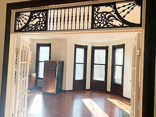 This spacious top-floor apartment in a historic townhome is filled with hand-carved moldings and 2 decorative fireplaces. High ceilings and hardwood floors showcase the beautiful light that streams in all day long. Located on a picturesque tree-lined block in bustling Bushwick, the neighborhood is quickly growing and filled with many great restaurants, galleries, and shops. Moments from the L, J, M, Z, A, and C train lines offer many transit options and make transportation a breeze. Pets allowed.