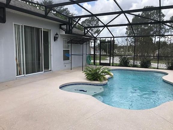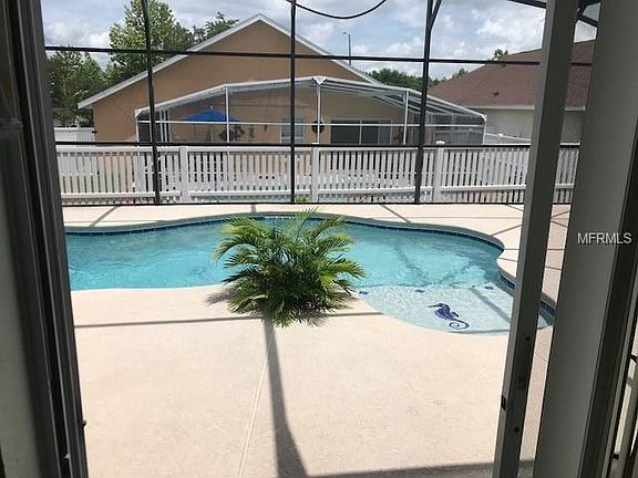 BACK ON THE MARKET! Buyer's financing has fallen through so their loss equals your gain! Beautiful move in ready 3/2 split plan with living room and additional family room/dining area located on a large corner lot. Minutes from Disney, shopping, golf and major highways. BRAND NEW Roof and AC installed in March. Nestled in quiet Florida Pines, it stands out w/St.Augustine sod, irrigation system and landscaping. Island kitchen w/42"cupboards including all appliances. Ceramic tile in common areas and wood in formals/bedrooms. Master features his/her sinks, garden tub, step in glass shower & walk in closet. Complete security system, exterior lighting, garage opener, ceiling fans and more. Enjoy your morning coffee with a side enclosed porch as well as a screened in area featuring an amazing in ground, salt water pool with lights, built in 2012. HOA has recently been reduced and homes in this community are going fast!