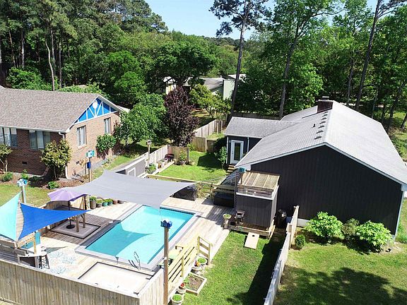 This is the perfect home for you!  One level living with so many updates and a pool!  Beautifully landscaped corner lot in upscale and convenient Baum Bay Harbor! Easy access to First Flight schools, bike paths, parks, and everything you could need right at your finger tips.  As you arrive you will feel at home and welcomed in through the inviting covered front porch.  The great room is spacious and open with charming fireplace.  The laundry room is located just off the great room.  Large, 2 car garage is also easy to access for storage.  The bedrooms are well appointed and spacious.  In the pool area the tiki bar is a dream with mini fridge and granite countertops.  This home has been extensively updated:  New Kitchen cabinets and counter tops in 2022. New flooring in Sun Room, Living Room, hall way and master bedroom in 2022. New Septic system and drain field (part of closing when we purchased the house) New HVAC condenser and air handler in 2021. New HVAC duct work, boots and vents in 2022. Pool resurfaced / tiled in 2020. New decking and fencing around pool, garden and dog yard in 2020. Installed rear gutters in 2021. New toilets and vanities in bathrooms in 2020. New exterior paint in 2022. New Hot water heater in May 2021.
