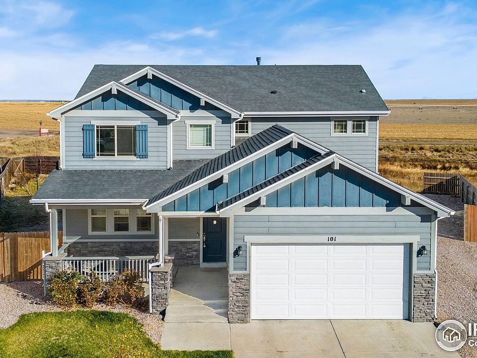 This two-story home in Kiowa Park sits at the end of a quiet cul-de-sac and backs to expansive open space, giving you a sweeping backdrop that stretches far into the horizon. Inside, the kitchen, dining, and living areas flow together seamlessly, creating a bright and airy space that works perfectly for everyday living. Large windows let in natural light, making the entire main level feel inviting and easy to enjoy. The kitchen includes stainless steel appliances, generous prep space, and a pantry that keeps your essentials organized. A mudroom connected to the garage entry features stylish herringbone tile flooring, a built-in bench, and storage to keep everything tidy as you come and go. Four bedrooms sit on the upper level, including a spacious primary suite with an ensuite bathroom and a walk-in closet. The upstairs laundry adds extra everyday convenience right where it's needed. The basement expands your living space with a full family area for recreation, plus an additional bedroom and bathroom, ideal for guests, hobbies, or a quiet workspace. Step outside to a concrete patio overlooking uninterrupted views of the open fields and the night sky. A 3-car garage plus RV parking gives you plenty of space for your vehicles and gear. Easy access to Fort Morgan and Greeley, and just about an hour from Denver.