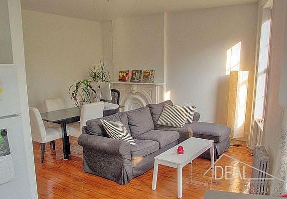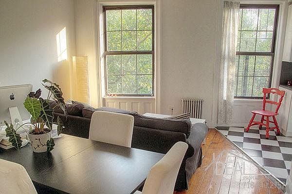 The one of a kind floor plan has a separate updated kitchen, giant living room area, king sized master bedroom, queen sized second bedroom, good sized bathroom, and a plethora of storage space! Prewar character, European 12 foot ceilings giving the home an airy Parisian feeling, refinished original wide plank floors, oversized double paned windows, tons of natural light, and adding more charm are the original lock and key doors. Located on second floor of a walk up building. Heat Included NO DOGS ALLOWED
