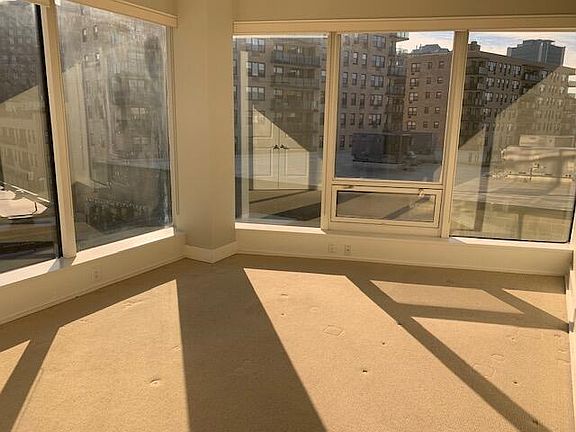 Oversized and updated loft like1 br in luxury midrise bldg in the heart of downtown! Gourmet eat in kitchen w/ high end cabinetry, granite countertops, and stainless steel Chef's appliances- stove, dishwasher, microwave, breakfast bar that opens into sunfilled living area w/ walls of glass, gleaming hardwood floors, large bedroom w/ floor to ceiling windows, modern bathroom, central air conditioning, garage parking space, professional gym, clubroom, roof top decks w/ grills, package reception, 24 hour emergency maintenance, pet ok, walk to train, shops, nightlife, minutes to highways and beaches! Owner pays for water/garage parking, trash, snow removal