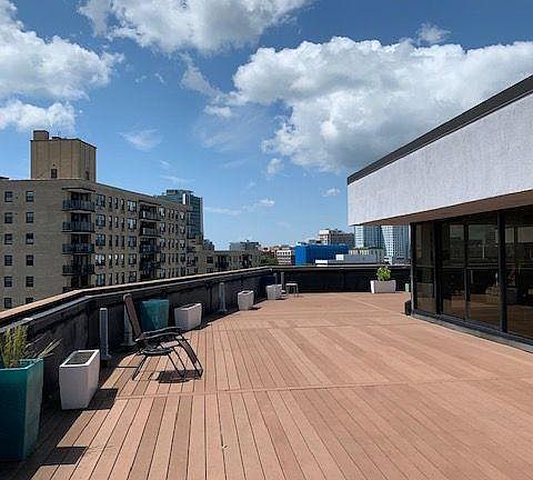 Oversized and updated 1 br w/ den in luxury midrise in the heart of downtown! Gourmet eat in kitchen w/ high end cabinetry, granite countertops, stainless steel appliances- stove, dishwasher, microwave, breakfast bar that opens into sunfilled living area, den/bedroom w/ walls of glass, large master bedroom w/ walk in closet, luxurious bathroom, central air conditioning, gleaming refinished hardwood floors, in unit washer/dryer, fresh paint, roof top deck w/ grills, professional gym, 24 hour emergency maintenance, package reception, garage space included, walk to train, shops, nightlife, minutes to highways and beaches, pets welcome! Owner pays for water/trash/garage parking