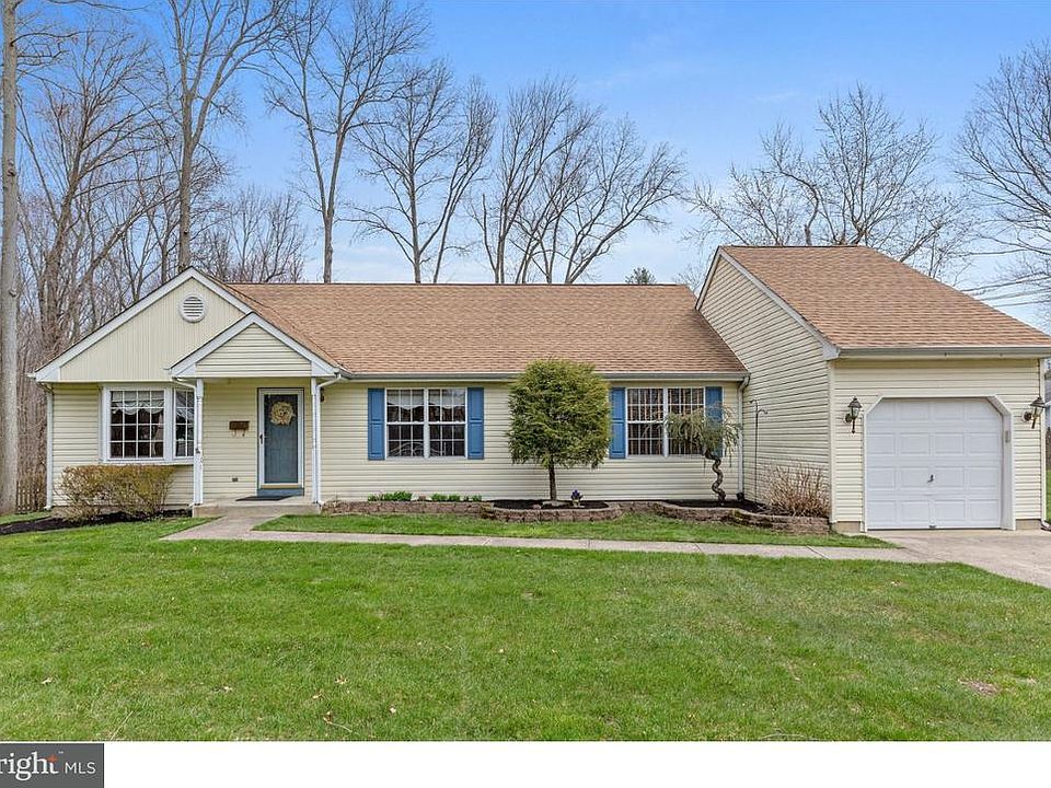 Seller looking for an offer!Privacy abounds in this super cute rancher in Marlton on almost 1/2 acre lot (.43). Features include 3 bedrooms, 2 full remodeled baths, LR with boxed window seat, DR, Gorgeous eat in with Maple faced cabinets, granite counters, tile backsplash, breakfast bar, upgraded lighting fixtures throughout. custom window treatments, laundry room with laundry tub, pull down attic storage, GORGEOUS screened in cedar porch with ceiling fan and access to patio and large rear fenced yard and shed backing to OPEN SPACE. 1 car garage is being used as music room and storage but seller will convert back to garage if buyer requests. Truly mint condition home!!