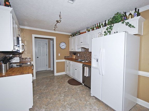 WONDERFUL 3BD + UNFINISHED BONUS RM. TONS OF UPGRADES INCL NEW CEILING FANS, 2IN BLINDS, CROWN MOLDING,OIL RUBBED BRONZE FIIXTURES, COVERED PORCH WITH EXTENDED PATIO, LIVING RM WITH EXTRA HIGH CEILINGS OPENS TO DINING RM WITH TREY CEILING. KITCHEN WITH BUTCHER BLOCK COUNTERTOPS, GLASS TILE BACKSPLASH, NEWER APPLIANCES THAT STAY, EAT IN BREAKFAST AREA OVERLOOKS LARGE BACKYARD W/STORAGE BLDG.