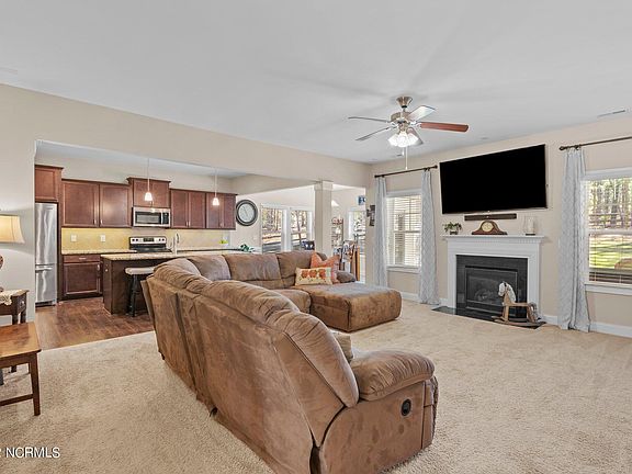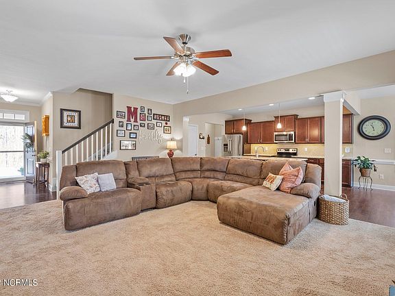Welcome to this spacious 4 bedroom, 3 full bath home located in the desirable Seven Lakes South Community. The floorplan is bright, open and flows well for daily living. The living room with propane log fireplace is generous and easily accommodates all you need to relax. The kitchen features recessed lighting, granite countertops, stainless steel appliances, pantry, and large island is great for hanging out and entertainment. Upgrades continue into the fully fenced back yard with covered porch and deck. The Owners suite, located on the main level boasts a large walk-in closet, ensuite with dual sink vanity, tub and separate shower. Two additional bedrooms located on the main level share a bathroom. The laundry room is conveniently located adjacent to all the bedrooms on the main level. If you need a 4th bedroom or office, this home has that as well located upstairs. Tucked back in the neighborhood with great amenities and located on a cul-d-sac street, this is a must see home.