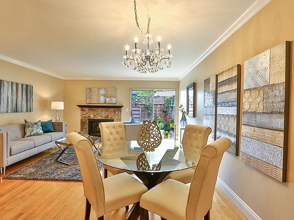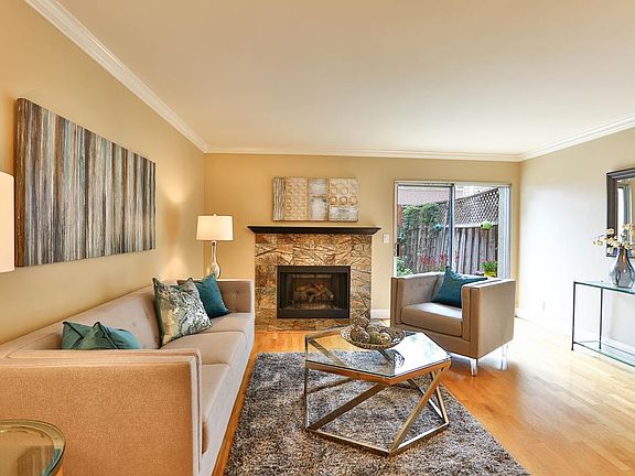 Stunning townhome in serene Campbell neighborhood! Gorgeous living & dining room with cozy marble gas fireplace, wood laminate flooring, and crown molding. The kitchen features sparkling tile countertops, electric stove, oven, and built-in microwave. Spacious master bedroom suite with 3 closets, dual vanities, and Tub and shower combo. Beautiful secondary bedroom with peaceful balcony and convenient upstairs hall laundry. Fabulous yard with pavers is great for entertaining and relaxing. Amazing location! Close distance to commute routes and vasona trails. Great schools; Farnham Elem, Price Middle, and Leigh High. A must see!