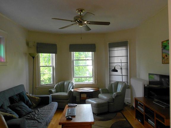 Rent: 1,800 / Month Beds: 2 Bath: 1 Available Date: December 1 Owner Occupied: NO Broker Fees Second Floor Pet: Indoor Cats Ok Charming, sunny and spacious apartment with lovely period touches, in a convenient in a quiet and safe West Roxbury location. Sun room with 8 surround windows and view of Boston skyline. Two large bedrooms, separate living and dining rooms (with built-in china cabinet, stained glass window, linen cabinet and more), updated eat in kitchen with lots of cabinets with pull out drawers and appliances (refrigerator, stove, dishwasher & disposal), attached pantry. Tiled bathroom and ceiling fan. Inside apartment washer & dryer. Additional Storage in basement. It's just up the road from West Roxbury Center and a short bike ride to Arnold Arboretum and Jamaica Pond., short walk to several bus lines and commuter rail to South Station. I-95 just 10 minute drive. First month's rent and a security deposit due at lease signing. Amenities Front porch with privacy surround panels Feels like home, not just apartment Three bow windows in living and dining rooms, also master bedroom Ceiling fans in all the rooms, with winter or summer directional setting (hot/cold air circulating) Sun room runs the entire length of the back of apartment with view of Boston above the treetops