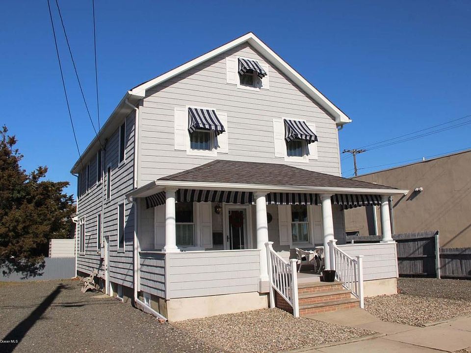 Carefully restored original beach house possesses all the old seashore charm and all the modern updates too. Large open front porch, huge eat-in kitchen with granite counter tops, center island, dining area plus breakfast nook, hurricane rated windows through out, small library ( can be 4th bedroom ), formal dining room, spacious entry foyer, mud and laundry room, master suite with two walk-in closets, upstairs office area, outside shower and patio are some of the amenities. This property is above the new proposed base flood elevation and has TWO driveways for all your and your company's vehicles. This is a lovely and immaculately maintained shore house.