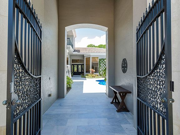 This stunning home resides on a rare corner lot backing up to the preserve, boasting one of the largest backyards in all of Mirasol, and complete privacy. With nearly 5,000 living sq ft, 5 beds, 5 baths, office, loft, and guest house, the property has no shortage of living space.The courtyard has been completely redone to showcase the very best of resort style living with sandblasted marble pavers, spillover spa, and saltwater pool, all surrounded by lush tropical landscaping to create your own private oasis. As you enter you'll be met with soaring floor to ceiling windows and a large open layout that lends to the scale and grandeur of the property. Elegant detailing can be seen throughout, with coffered ceilings, full wet bar, grand wall features, and built out office. The gourmet kitchen is a chef's paradise, complete with a gas range, double ovens, white shaker cabinets, full walk-in pantry, and large wrap-around countertops with center island. An attractive split floor plan with the primary on the ground floor every room enjoys picturesque views of the preserve and/or the courtyard. Mirasol is among Palm Beach Gardens most sought after premier country clubs, with a 75,000 sq ft clubhouse featuring multiple dining options, full spa, state of the art fitness center, kids clubhouse, tennis and pickleball courts, olympic sized pool, and two championship golf courses. An incredibly active community offering a range of social activities and events for the residents.