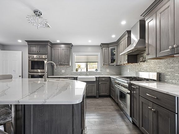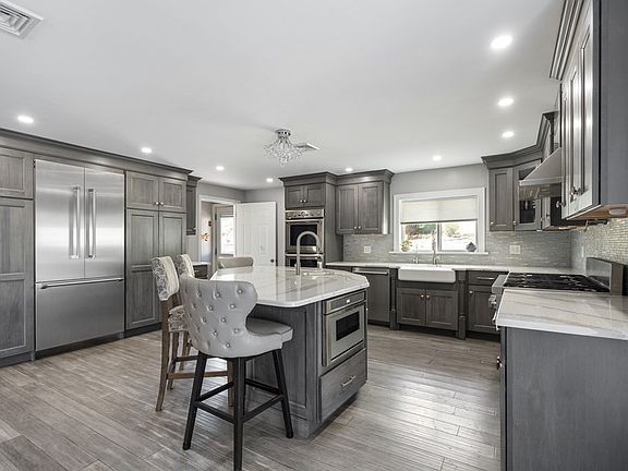 Magnificent large open floor plan with 3 1/2 year old State of the art Professional Chef’s kitchen. Gorgeous 6 burner stove with pot filler, double wall oven, microwave drawer, built in Refrigerator and dishwasher, Gray Bamboo floors throughout. Sunken large granite fireplace living room. First floor master suite with walk in closet and bath. Second floor boasts 3 over sized bedrooms, closets and skylights done 6 years ago. Central air about 6 years gas heating about 8 years. Large deck and yard along with parking for 10 cars. Great views of Boston skyline minutes to all points North and South in this Beautiful West Revere home.