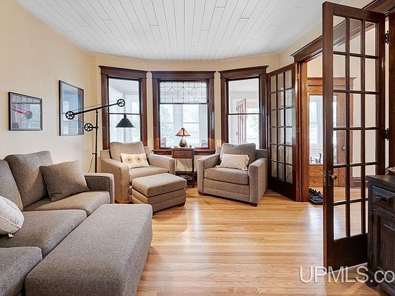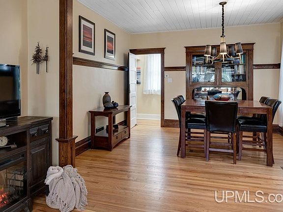 Looking for the character of an historic home with none of the headaches? Here is a 3 bedrooms 2-story on a corner lot in Negaunee that has been updated top to bottom--from roof and windows to floors and sidewalks. Nothing to do but move-in! Begin in the full-length south-facing sun room with gleaming maple floors, the Seller's favorite room in the house. Then enter the living room through the French doors with high ceilings, original woodwork, leaded glass windows and refinished red oak floors. Flow into the formal dining room, perfect setting for hosting holiday meals with family or dinner parties with friends. You'll surely appreciate the adjoining Butler's Pantry with built-in shelves and drawers. The renovated kitchen has white cabinets, white farm sink, butcher block counter and subway tile backsplash. The artistic touches and lighting are picture perfect. A convenient pantry in the kitchen provides additional storage too. Front & back stairways lead up to 3 bedrooms with large closets and a fully remodeled bath with marble low-step shower and ceramic tile floor. More storage in the full basement where you'll also find the new furnace and central air conditioner. Step into the fenced and landscaped yard from a west side entrance that also houses a handy recycling alcove. The detached garage sits on the east side with paved driveway. If you yearn to live in a community that operates on a positive "Moving Forward" message, you belong here. This is where kids walk to school, folks gather to hike, bike or just go for a walk with the dog, and it's easy to meet up for a burger & beer or a coffee & cookie. Is it time to make your investment in Negaunee? This home has been thoughtfully updated with quality products and precision. Don't let this one get away. All offers due by Friday, September 1st at noon.