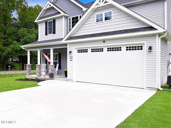Welcome to 101 Ridge View Dr., a beautifully crafted 3-bedroom, 2.5-bathroom home located just minutes from Camp Lejeune. This home boasts elegant Craftsman-style finishes and luxury features, including 9 ft ceilings on the first floor, creating a spacious and open feel. The gourmet kitchen is a chef's dream with soft-close cabinets, granite countertops, and sleek stainless steel appliances. A versatile flex space on the main floor can be used as an office or formal dining room, while the bonus room upstairs offers even more flexibility for your needs. Step outside to enjoy the beautiful covered patio in your fully fenced yard, perfect for entertaining or relaxing in privacy. Additional perks include a shed for extra storage and a matching chicken coop, ready for your flock! This home combines style, comfort, and practicality in a prime location near Camp Lejeune. Don't miss your chance to make this house your home!