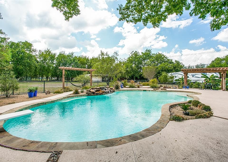 RARE find in Murphy on 1.5 acre lot COMPLETELY REMODELED and well maintained! New scratch & water resistant wood style tile floors throughout main areas. Welcoming and open floor plan plus game room right off the living room features a custom wet bar, half bath and French doors to the patio & pool area. This home is JUST RIGHT for entertaining or lazy weekends at home.Beautiful diving pool, arbors, fire pit & shade trees. Huge backyard, side yards, fenced dog area & storage or carport out back. 2 car attached garage is oversized. This piece of property and house has so much to offer, even those great slide out shelves in the kitchen. Great location with easy access to shopping & Hwy 75 & 190. Come see it today!