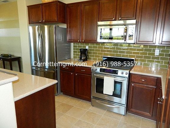 This Gorgeous 2 bedroom 2 bathroom Townhouse is located in Folsom near Blue Ravine Rd & E Natoma Street, close to schools, parks, shopping, restaurants, Folsom Lake, steps from bike and jogging trail. This is a great location! Amenities feature a great open floorplan that includes living and dining area, fireplace, beautifully updated kitchen with stainless steel appliances, dishwasher, range, disposal, microwave, refrigerator, center island and lots of cabinet and counter space, central heat & air, indoor laundry room with washer & dryer, large master bedroom with walk-in closet, updated bathrooms and fixtures throughout, balcony patio, 2-car garage with door opener. Tenant pays all utilities