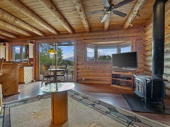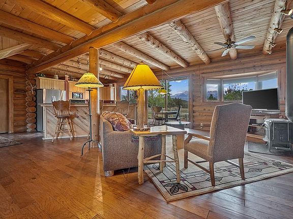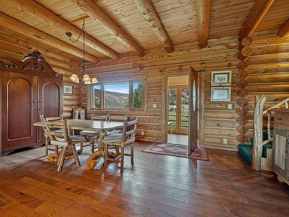 Custom log home with a beautiful mountain view! A perfect place to have a hobby farm or raise a family. River frontage and creek frontage, with irrigation to water the pastures for your animals. Zoned in floor radiant heat throughout the house. The living room has a warm and cozy wood stove. A heated three car garage, a raised bed green house, and a horse/llama shed. The irrigation water is from the keystone ditch with only three houses on this ditch. This house is the first on the line. The Uncompahgre River is the western boundary of the property, and Dry Creek is the south boundary of the property. Home stained, new furnace, new refrigerator and dishwasher in 2019. Do not miss the rare opportunity to own a beautiful home on the river!! .