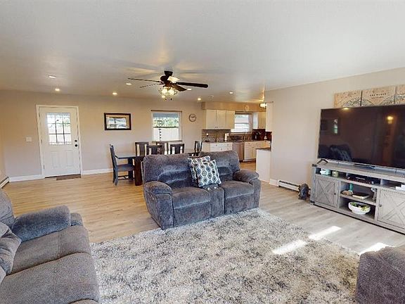 Remodeled and immaculate home on the north side of Alamosa. This 3 bedroom, 2 bath home features an open floor plan, interior 2 tone painting, new laminate flooring and carpet, white kitchen cabinets with granite counters, updated stainless steel appliances, custom tile work in kitchen backsplash and hall bath shower, new recessed lighting and light fixtures throughout, both bathrooms remodeled, new insulated garage door and more. Exterior landscaping has also been upgraded with mature lawn, new fencing, extended covered patio with pergola, fire pit with benches, shed, gravel accents and driveway. This home is move-in ready. Call today to schedule your showing. Pre-qualified Buyers only for showings.
