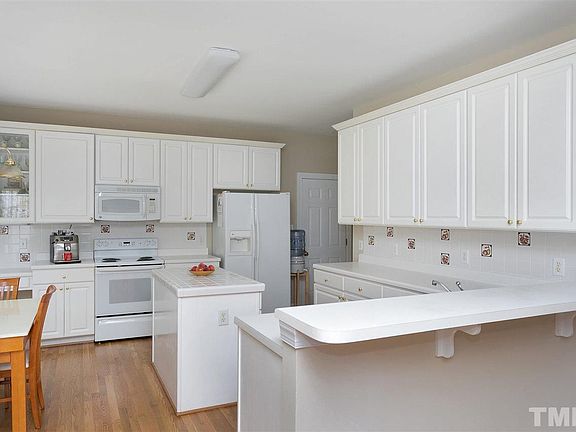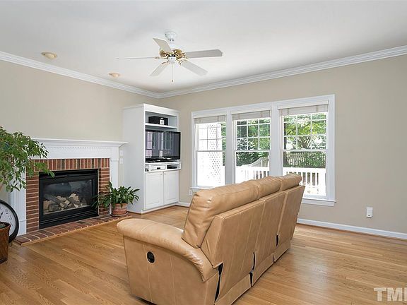 Charming custom built home nestled on cul de sac w/ rocking chair porch. Formal living / office. Huge kitch w/ island, desk, tons of cabs. Spacious mstr w/ sitting area, lg walkin clst. 4 bed or 3 & bonus. All HWs down. New in 2018: both HVACs, all carpets, refinished hardwoods. New 2017: hot water heater, paint in/out. New roof 2015. Wlk-up attic. Fenced yard w/ privacy. Active n'borhood w/ fun activities for ALL thru-out year. Great location - RTP, downtown Raleigh, RDU, SAS. Pristine!