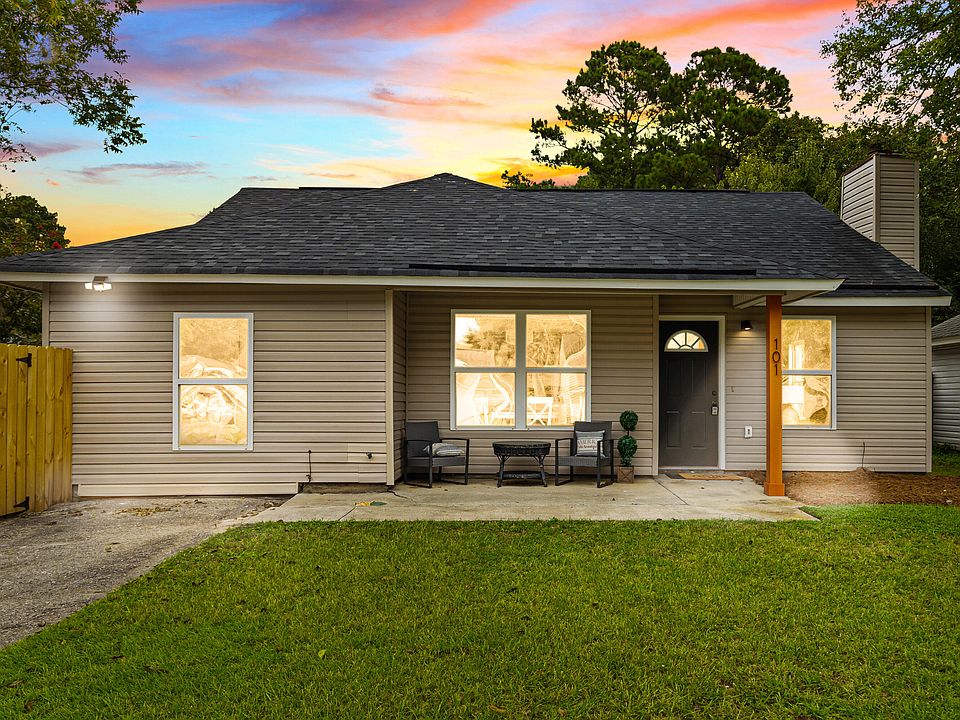 Welcome to your new home at 101 Robert! This renovated abode is nestled on an expansive corner lot with a double driveway and fully fenced backyard. Located in the highly rated DD2 school zone. NEW ROOF!!! This charming home boasts a spacious floor plan with vaulted ceilings, fireplace, and updates galore. Spanning over 1,300 square feet and offers ample space for comfortable living. With 4 BEDROOMS and 2 full bathrooms, this home is ideal for families or those seeking an extra space for guests or a home office. Both bathrooms are updated with new tubs, tile surrounds, vanities, toilets, lighting, and mirrors! New waterproof LVP flooring throughout! Kitchen features solid wood cabinetry, sparkling quartz countertops, and brand new stainless steel appliances! Primary bedroom has a privateen-suite bathroom and HUGE walk-in closet that's big enough to be a 5th bedroom. Newer vinyl windows too for maximum energy efficiency! Contact your agent to schedule your showing today!