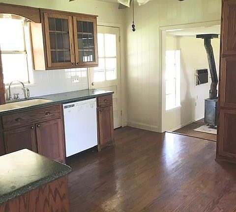 Great location and visibility for this 1,820 square foot home with 2 bedrooms, 1 bath & 2 living areas. Perfect for a small business, first time home buyer or retirement place in the country. 2 car & 1 car detached garages plus well house on 1.500 acres. Kitchen has newer cabinets, Corian countertops & double sink, dishwasher & microwave. Covered back patio looks out over 11 pecan trees & pear tree. Formal Living room plus a second oversized living room with wood burning stove. RV hook up with electric, water & sewer. Eco-friendly gray water system for house. Quiet and peaceful country living yet close to Weatherford shopping & entertainment. Easy access to I20 from Ric Williamson Pkwy & close to Ft. Worth.