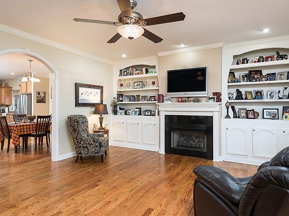 This 3 bedroom home sitting on a corner lot has so much curb appeal and is conveniently located just minutes from shops, restaurants, schools, and easy highway access. Big, covered front porch ushers you into the home. This home has a lot of upscale features, from the gorgeous hardwood flooring running throughout the main living areas and kitchen to the crown molding and custom bookshelves on both sides of the fireplace in the living room. This home has great natural light! Kitchen features a spacious dining area, lots of counter and cabinet space, and stainless steel appliances. Master suite is large with a tray ceiling and private, ensuite bathroom with a separate whirlpool tub and walk-in shower. 2 additional bedrooms are generously-sized. You can enjoy your fully-fenced backyard rain or shine thanks to the covered, back patio - perfect for unwinding or entertaining guests. You won't want to miss this home - call today for a private showing.
