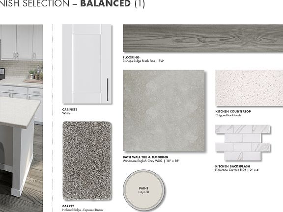 At the heart of this open-concept main level, the kitchen boasts an island perfect for entertaining. Upstairs, enjoy the laundry room and loft. White cabinets with white quartz countertops, EVP Plank flooring and carpet in our Balanced (1) Package.