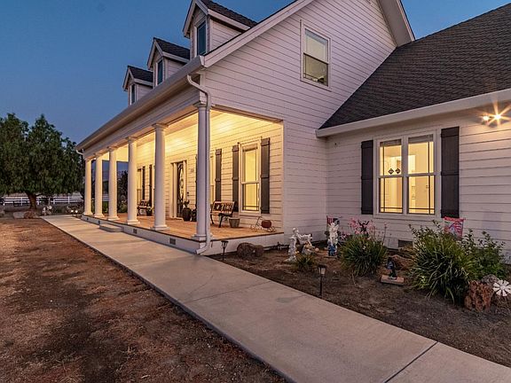 STUNNING North San Benito County Home! Situated on 5 acres, this custom built home features over 4150+ sf of living space. This meticulously maintained home was beautifully designed and features an open floor plan which boasts volume ceilings, crown moldings, hickory hard wood floors and so much more! The entry opens to formal living & dining rooms that flow to the gourmet kitchen. Bright white cabinets & granite slab counters compliment the everyday dining area. There are 4 beds plus an office. The owners suite features a gas fireplace, his & her walk in closets, & jetted tub. The floor plan supports income potential or multigenerational living as 2 beds located on the west end of the home feature a separate entrance & full bath. Upper level game room, 3 heat & AC zoning, finished storage over 4 car garage, plus a shop. Multiple fruit trees, large dog run, chicken coop & 40' storage container included - Too many features to list! Perfectly located in Spring Grove School Dist.
