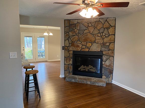 Recently renovated 1040 sq ft Cary townhome in great location at Taylor's Pond. 1 bedroom and 2 full baths. The upstairs has a large bedroom with flex space for office or sitting area. One mile from downtown Cary and less than two miles from Park West Village and 1 block from Northwood Elementary School. Very convenient commute to RTP and surrounding areas. This is the first end unit in the community and backs up to the pond and fountain. The recent renovations included a new deck, master bath, double blinded doors on both levels overlooking the deck and pond, granite countertops throughout, microwave and stove, gas log fireplace installed with remote control, Nest thermostat, new sinks in kitchen and downstairs bath. Other features include washer/dryer, large refrigerator with ice maker, dishwasher, garbage disposal, gas tankless hot water heater, gas furnace, engineered hardwoods throughout, bedroom skylight, storage room, balcony off of bedroom, and 2 assigned parking spots. No smoking, renter pays all utilities and cable, any damages from pets are the renters responsibility. 1 month's rent is required as deposit. Renter must follow all HOA guidelines.