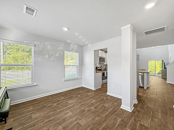 Two years new corner unit townhome in the heart of Summerville. 3 bedroom 2.5 bath with a loft. Primary bedroom downstairs. 2 story vaulted ceiling in the living room. Most furniture is also for sale and available to remain.