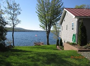 Year-round, basically furnished, easy access waterfront home on Rossiters Point, Seymour Lake. 800' shoreline, including wet boathouse, double garage, garage space in basement, large deck and lower patio. Gas hot water heat, gas fireplace, gas range & clothes dryer. Daylight basement with sliders to patio. 8'x40' Eastern Townships Dock system. Wet boathouse for 20' boat. Near ski area, VAST trail systems, on loveliest lake in VERMONT. Loft for office of sleeping. Lower level with family room and another office/family space. Broker Owner