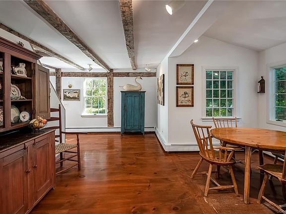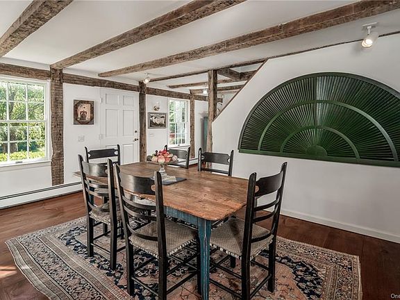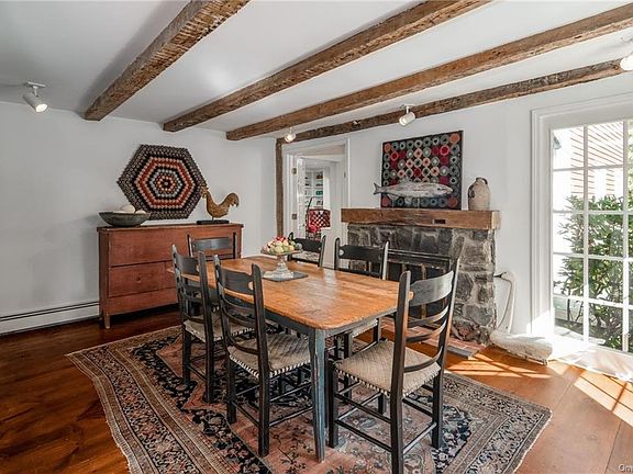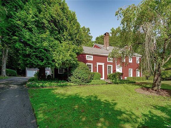This quintessential country colonial on prestigious Round Hill Road is full of character and charm boasting several wood beams, wide plank floors and 3 wood burning fireplaces in the award winning Byram Hills school district. Over 3,000 square feet setback on 2 beautiful acres with a patio and spacious yard. Main floor offers many comfortable social spaces including kitchen with breakfast room, large family room with built-ins and French door to patio, living room with fireplace and 3 sets of French doors bringing in an abundance of natural light, and dining room w/fireplace. Primary suite with wood burning fireplace, balcony overlooking the backyard and full bath share the second floor with three additional bedrooms, full bath, hall closets and second staircase. Oversized two car detached garage with full second level for storage. Minutes to towns of Armonk, Bedford and Greenwich. Easy commute to NYC with 38 minute express train from North White Plains or under an hour drive. Very low taxes!
