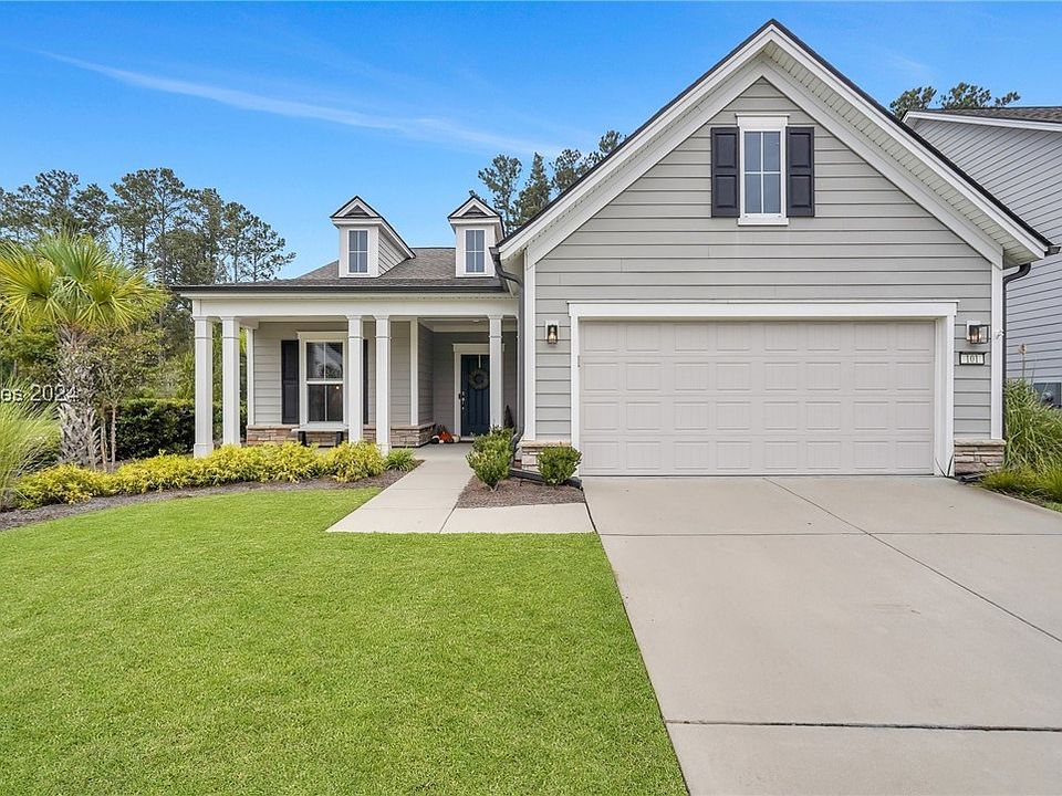 Stunning Martin Ray floor plan at The Landings at New Riverside! This impeccably designed home, located on a spacious & private corner lot, exudes model-home quality. Boasting an array of upgrades including a gourmet kitchen with a luxury island, butler’s pantry, SS KitchenAid appliances & gas range. Elegant custom lighting & LVP flooring flow throughout. Primary suite impresses with a tray ceiling & bathroom showcases a zero-entry tile shower w/ rain showerhead. Crown molding throughout the main living areas, complementing 3 bedrooms & versatile office/den. The landscaped backyard creates a perfect setting for both relaxation & entertaining.