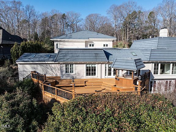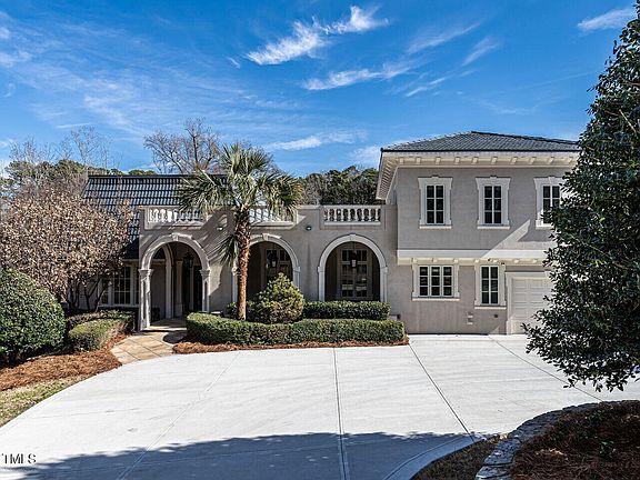 Welcome to 101 Rutherglen a Spanish-inspired villa that is a true masterpiece, offering breathtaking views of the 16th green in one of Cary's most coveted neighborhoods. Every detail of this home is designed to impress, from the elegant tray ceilings and cozy fireplaces to the chic coffee bar that makes everyday living feel like a retreat. With 7 bedrooms and 5.5 bathrooms, this estate seamlessly blends luxury and comfort. The chef's kitchen is a dream, featuring stainless steel appliances, an oversized fridge/freezer combo, double dishwashers, and a double oven—perfect for entertaining or effortless daily living. The first-floor primary suite is a private sanctuary, boasting a spacious sitting area, fireplace, and spa-like ensuite with floating vanities, a soaking tub, dual walk-in closets, dual water closets, and an oversized marble shower bathed in natural light from skylights—even the closets have their own skylights! Designed for flexibility, the second floor offers two large bedrooms and a loft, allowing for a second primary suite or an in-law suite option. With two separate second-floor wings, this home is ideal for multi-generational living, offering the perfect balance of privacy and shared space. Downstairs, the lower level is an entertainer's paradise, featuring a stone fireplace, a wine cellar, and a traditional tasting room, creating an ambiance perfect for intimate gatherings. Step outside to the newly enhanced landscaping, Mediterranean-inspired patio, and multi-level deck, where you can relax and soak in the spectacular golf course views. The expansive side yard is ideal for lawn games, outdoor entertaining, or simply enjoying the beauty of your surroundings. Don't miss this rare opportunity to own a true luxury retreat in MacGregor Downs—where elegance, comfort, and lifestyle come together seamlessly.
