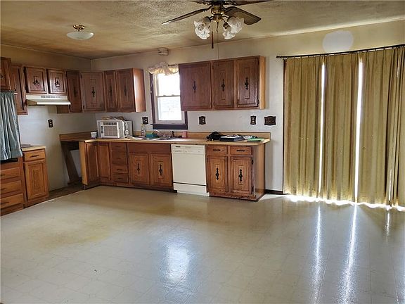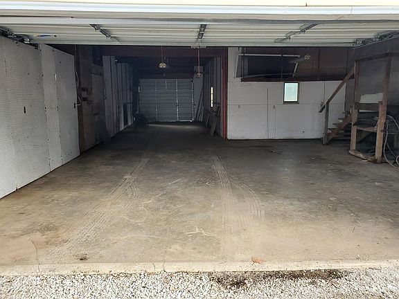 This quaint home has plenty of space. 4 bedrooms and one bath upstairs with a full basement. There are laundry hookups on the main floor and in the basement. The basement has two partially completed rooms and a working toilet. The 3 car garage has a front and rear door as well as a wood stove and is wired with 220. The back of the house has a small deck and the backyard goes way back.
