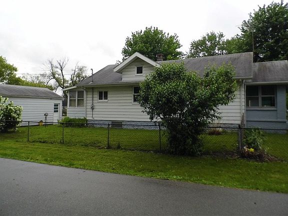 2 bedroom, 1 bath bungalow with full basement, oversized detached garage, fenced corner lot and lots of flowers! Two plum trees. Hardwood floors, front and back porches. Many recent updates include: furnace & C/A in 2013, wiring in 2001, garage & storm doors in 2011, outdoor motion lights 2011, ceiling fans in 2011 and updated bathrooms. Lots of shelving in garage over basement! Newer windows too!
