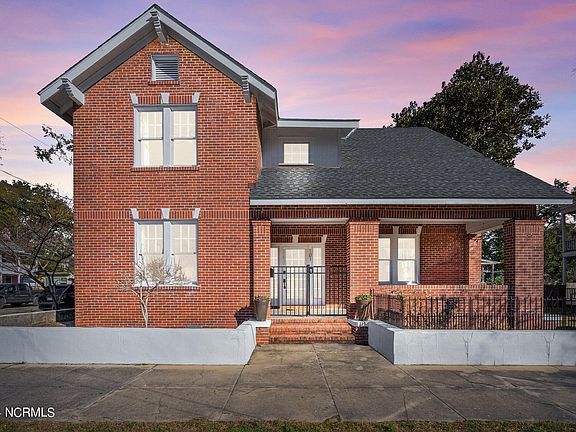 Welcome to this beautifully renovated historic home located in the heart of Historic Downtown Wilmington, and is just a couple blocks away from everything the vibrant Wilmington scene has to offer; eclectic shopping, stellar cuisine, and top-notch entertainment. The quiet ambiance of the neighborhood is evident while the convenience of a garage for off-street parking ensures privacy and ease of access. Beyond the wrought iron gates lies a spacious courtyard, ripe for transformation into additional parking (COA available) or a captivating entertainment area for gatherings under the Carolina sky. As you step inside you'll be greeted by an abundance of natural light illuminating the marble-tiled entrance that leads to the family room, dining area, and kitchen. This 1928 home has been meticulously renovated, preserving its historic charm while seamlessly integrating modern comforts. Original inlaid hardwood floors have been restored to their former glory, as testament of artisanship.