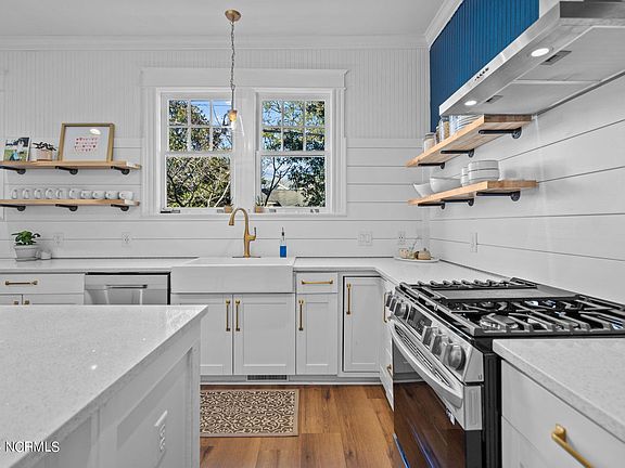 Every detail speaks of thoughtful design and superior craftsmanship. From the new HVAC system to the LVP flooring and vanities in the bathrooms, no expense has been spared in ensuring a blend of elegance and functionality. The kitchen boasts beadboard accents and quartz countertops, complemented by shiplap detailing and floating shelves that evoke a sense of timeless sophistication. Throughout the home, high-end artisan finishes abound, from the charming staircase to the thoughtfully finished basement and the elegant trim finishes in the dining room. Each element has been carefully curated to elevate the living experience and celebrate the rich heritage of this historic gem. Dreams do come true in beautiful Wilmington, North Carolina.