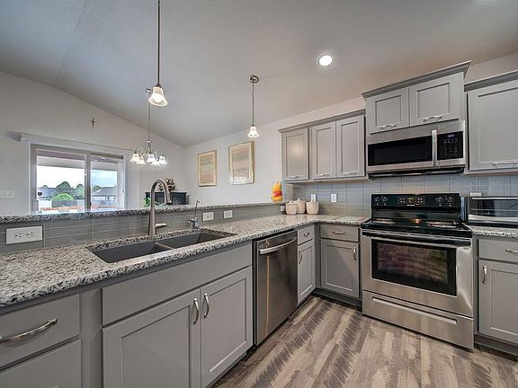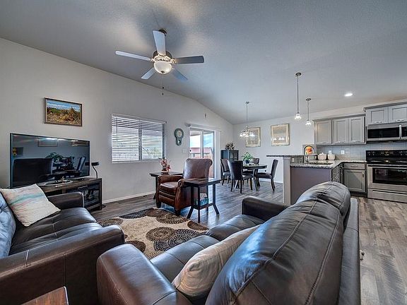 Nearly new home with all the bells and whistles you want! Modern floorplan, completely finished basement, separated master bedroom with a spacious 5 piece bath and huge walk-in closet with additional shelving. High ceilings, a newly added covered back patio that is ideal for all your events, at 12 by 24 feet with a peaked roof. The lot itself is over 1/2 acre!!!! A smaller yard inside that is fenced with a wood privacy fence, and beautiful rose bushes line the back of that fence. Stainless steel appliances, granite countertops throughout, attractive new hardware on all the cabinets, roll out shelves, on-demand hot water heater, and more. Large family room downstairs is ideal for whatever you need, plus two more bedrooms and a bath are located there. One of those bedrooms has a very large walk-in closet as well. Attractive plantation shutters throughout. Second bedroom on the main floor is next to the hall bath... Home is cleaned and ready for you to move right into. Small patch of backyard grass could be reinstalled...the rest of the yard is low maintenance rock. Easy access to town just a block off Spaulding, just west of the main McCulloch entrance south from Hwy. 50. Built in 2020, this is the popular Brighton plan, built by Sky Creek Homes. Complete french drain system, excellent heat and air conditioning systems....like a new home, just better! You will love the large cover over the back patio, which was just added!!! Easy access to town also.