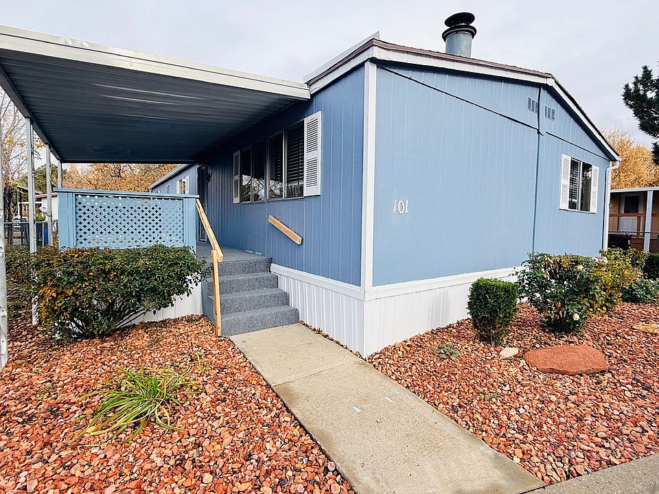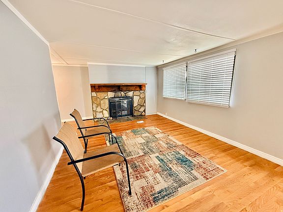 This charming 3-bedroom, 2-bathroom mobile home features fresh paint, a covered carport, and two sheds in the backyard. Enjoy the comfort of a new air conditioning system, a cozy fireplace, and ample living space with a formal dining room, living room, family room, and spacious backyard. A must-see property, easy to show!