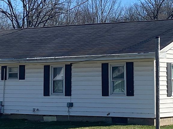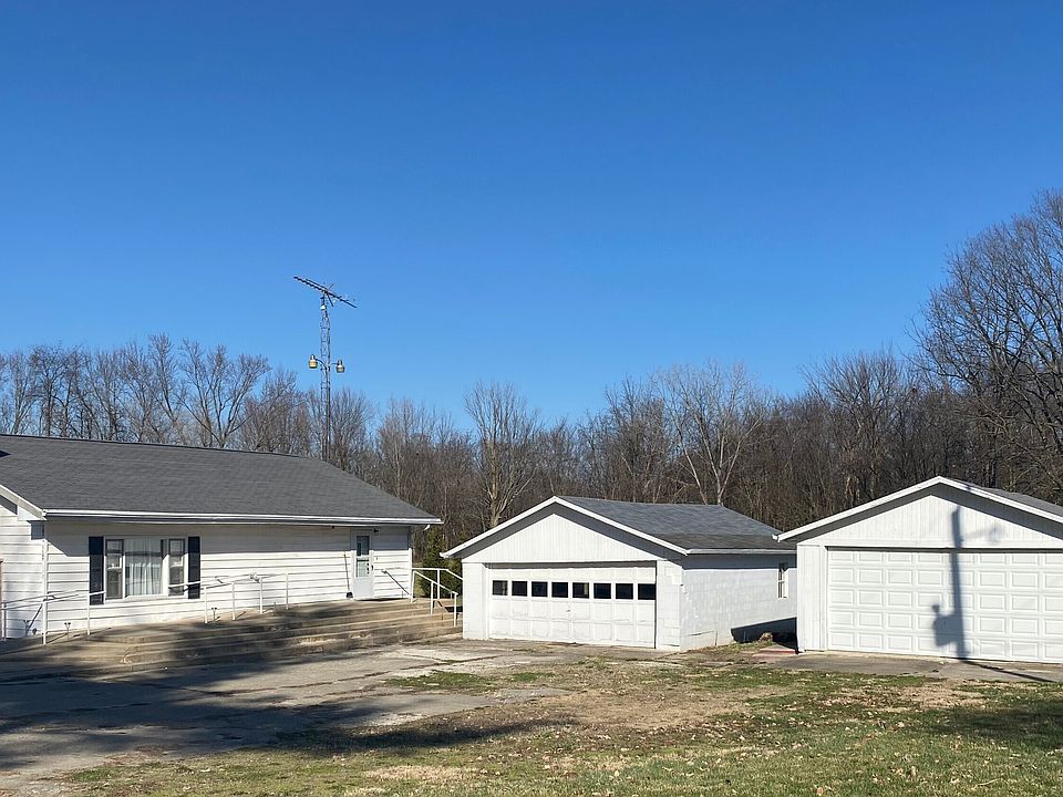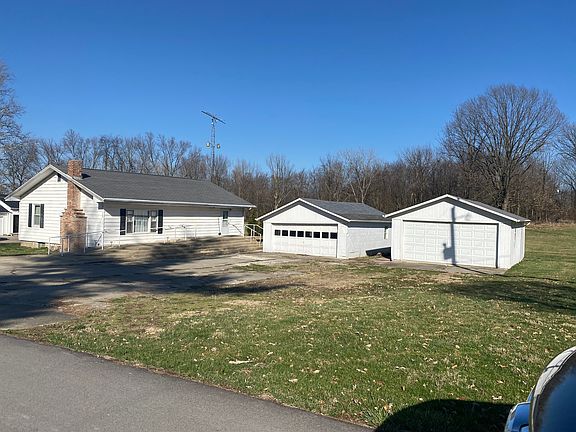 Ranch home with large backyard and two garages. Open concept kitchen/dining and living room, two bedrooms, one bath, and a separate laundry area with closets for storage. Appliances included. Full basement. Well maintained home.