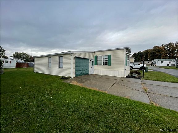 Own a home in Hamburg at a very affordable price. Come check out this beautifully maintained manufactured home only minutes from Lake Erie. Hamburg is a one of kind location where you can come and find peace and tranquility away from the craziness of the city. This home has an extra-wide concrete driveway, is a 2 bedroom, 1 bath with an attached 1 car garage with storage. Its 14' X 76' plus 7' X 14' bump out in the living room. for an appox. 1162 sqft.