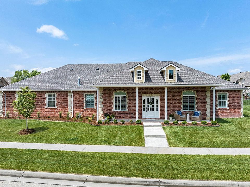 Completely remodeled zero entry home located in Belle Terre Addition. This sprawling ranch has been updated from top to bottom. Some new features include: new roof, all new interior enamel paint, new paint on trim and all cabinetry, new paint on exterior trim, all new interior light fixtures, some new hardware and faucets, some new carpet, new kitchen tile backsplash and new exterior landscaping with drip system. This home has hard surfaces in all kitchen and baths! Full inspection already completed with most items repaired. Main floor features too many to list! Some include large foyer opening to main floor dining room and large open floor plan featuring living room and kitchen area perfect for entertaining. Off of the kitchen is a perfect reading nook that can also be used for informal dining. Main floor family room off of the living room that leads to the large back patio. Split 4 bedroom plan with 3 spacious bedrooms on one side. One of the 3 features an en-suite bathroom. Another bathroom is located between the other 2 bedrooms. The other side of the home features a 1/2 bath perfect for guests, a large drop zone, incredible laundry room and master wing. The master wing has 2 very large walk in closets, safe room and additional storage. The master bath features double vanity, separate water closet and incredible walk in tile shower. Every bathroom in the house has tile and tile showers. The 27 x 40 foot garage is worth talking about- it can easily fit 4 cars. The new landscaping is all on drip hoses and the yard features a sprinkler system and irrigation well. Owners are licensed Realtors in the state of Kansas.