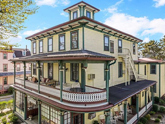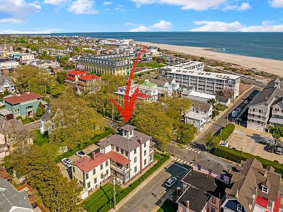 Compare price just paid for one-bedroom unit in building ($710k, unit 1-B, Oct. 30) that is nearly 600 square feet smaller than this nearly 1,200 square foot two-bedroom two-bath condo. Easy walk to the beach! Great location. Unit 3 encompasses the entire floor of historic, 1871 Victorian and features private access to cupola with ocean and lighthouse views. Property includes one-deeded off-street parking space and use of 3 spaces shared by owners of the condo association. Successful 24-year rental history; unit being sold furnished. The primary bedroom is large (king bed) with a big closet, two windows and a private tiled bath with tub and shower. The larger, second bedroom currently fits two over-sized twin beds and bunkbeds, has three windows and a large closet; the second full bathroom with tub and shower is steps away. There are 17 windows in our condo to view Cape May in all directions, capture the glorious sunshine and bring you those cool, cool Cape May breezes. This is the only condo in the building with central air conditioning and (gas) heating. From the living room you can see the ocean and open the windows to hear the waves crashing. The kitchen includes a refrigerator with ice maker, electric range, microwave, dishwasher, and an oversize sink with disposal. There are four barstools at the island and the dining table is just off the kitchen. The condo is a short walk to the beach, Congress Hall, and the historic Washington Street Mall. You are within walking distance of nearly all the best Cape May has to offer. The association provides a bike rack, a shared grill and coin-operated washing and dryer. There's an outdoor clothesline and two enclosed outdoor showers. The Belvedere is on a shady, tree-lined street in Cape May's primary historic district. Built-in 1871, this Italianate and bracketed-style villa is one of the original and grand, historic Cape May summer cottages built by renowned architect Stephen Decatur Button.