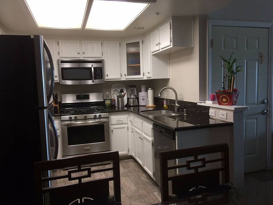 2 bedroom, 2 bath. 900sq feet, 2nd story unit. Non- furnished Washer/Dryer, Refrigerator, and Dishwasher in unit. One detached garage and 1 reserved space available for use. Vaulted ceilings and ceiling fans and central air conditioning. Also has balcony/patio space. Complex has pool, hot tub and BBQ grills for use. Complex is currently undergoing a major exterior renovation so you will have to deal with a few months of dust in exchange for a great look after. Available August 1st. $1,900.00 month plus utilities (water/trash included), 1,500.00 security deposit. Small dog/cat okay but extra $500 deposit. Water & Trash Included Credit Check will be done or can be submitted by applicant.