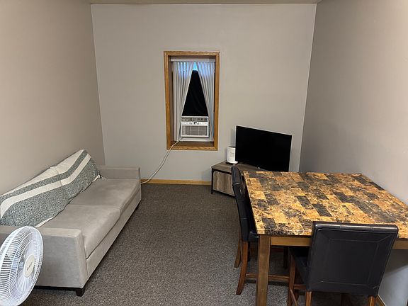 Fully furnished two bedroom on the first floor of an historical building right on Main Street in Mitchell. There are coin-operated washers and dryers on-site. Landlord covers all utilities, including high speed internet. Tenant is only responsible for rent and deposit. Entire deposit is refundable as long as apartment is left in the same condition as when moved in. This building has a private parking lot.