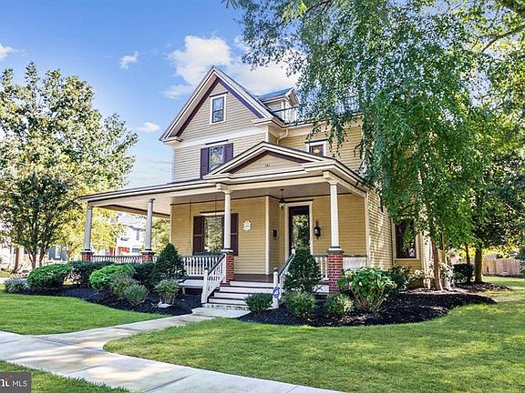 This exquisite home located in historical Wenonah NJ, is now on the market! Walking up to this property, one will start to feel the ambiance of perfection. From the exterior peaks and curves, the beautifully matured landscaping and the huge wrap around porch, one will appreciate the old-world charm in today s setting. Enter into the spectacular foyer, with the turned staircase and original chestnut wood trim and moldings. The home has antique pocket doors on the main level. There is a large formal Dining room, spacious Living room and a Family room just through an arch-way off the living room, where there is plenty of space for the entire family to gather. The recently remodeled eat-in kitchen is charming with pressed tin and tile back splash, newer appliances and much more. On the main level you will also find a newly remodeled bath with a pedestal sink and wainscoting. The 2nd floor has 3 spacious bedrooms with large closets, a large full bath with a walk-in cedar closet. The 3rd floor is finished, heated and can be used as a 4th bedroom or an office, craft area really whatever you need! This corner lot home also has a detached garage and basement. Don t miss the opportunity to see this special home in the friendly town of historic Wenonah!