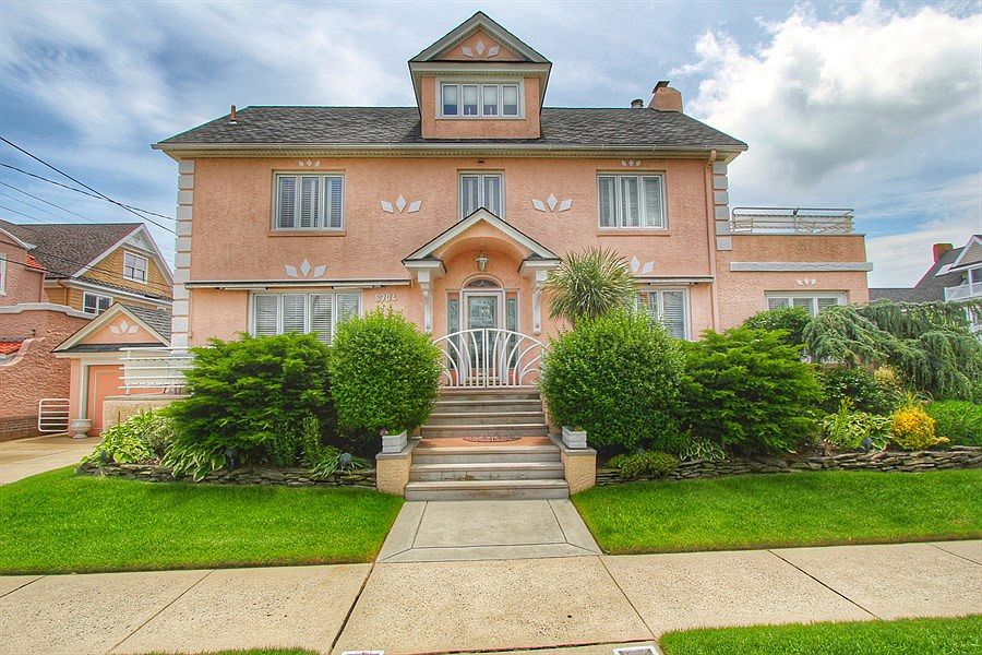 This 5 bedroom 3.5 bath Parkway Beach Block home was totally renovated in 1994 and has been meticulously maintained ever since. Just four homes to the beach, the interior features include a huge living room with a gas log fireplace, an expansive eat-in kitchen, a large dining room, a florida room, hardwood floors, custom wainscoting and many other architectural details through out the home. The second floor has three bedrooms including a master bedroom suite with its own private bath and a private deck boasting gorgeous ocean views. The third floor has two more bedrooms and one more full bath. The exterior highlights include a large porch as well as an attached garage.