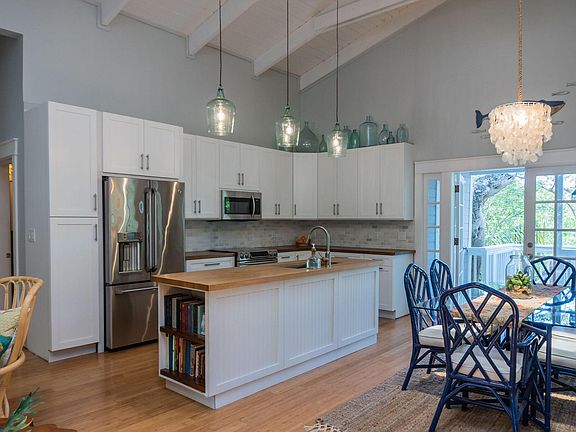 So much room and so much character! Up-to-date and lovely! T and G ceilings soar to 18 feet in the bright, open space of the living, kitchen and dining areas upstairs. Three bedroom, two baths, an office and two huge porches complete the upper level. An interior stair case leads to a huge two bedroom guest suite downstairs - permitted and above flood. Lush greenery out every window - it's like an island tree house! Dine and relax in multiple outdoor living areas. Plenty of storage, excellent location - bay front HO park with sunsets and ramp suitable for flats boats. 2 miles to Plantation Key Elem. School and Coral Shores HS. 2 miles to excellent Founders Park with full service marina, pool, tennis and more. The perfect island home for multi generational living, WFH or at home schooling.