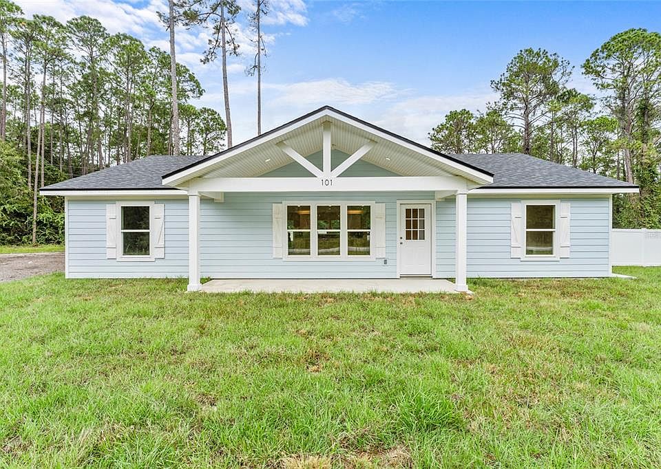 Welcome to your brand-new home by Precision Home Builders! Step inside to discover a bright, open-concept 1,490 square foot split floor with 3-bedrooms and 2-bathrooms. Upon entering you'll notice the high vaulted ceilings that make the living and kitchen areas feel spacious and inviting. The kitchen is a showstopper with automatic under-toe lighting, a convenient pot filler, and plenty of counter space to inspire your inner chef. The primary suite provides a private retreat with a beautifully finished en-suite bath complete with a large closet. The additional bedrooms provide comfort and flexibility for guests, family, or a home office. Outside, you'll find yourself surrounded by the tranquil beauty of the St. Johns River area, where fishing, boating, and kayaking are part of everyday life. Whether you're looking for a full-time residence or a weekend getaway, this home delivers the best of Florida living. Please note that this property has been virtually staged. The furnishings and décor shown are for illustrative purposes only. All information deemed reliable but not guaranteed. Buyer is responsible for verifying all information.